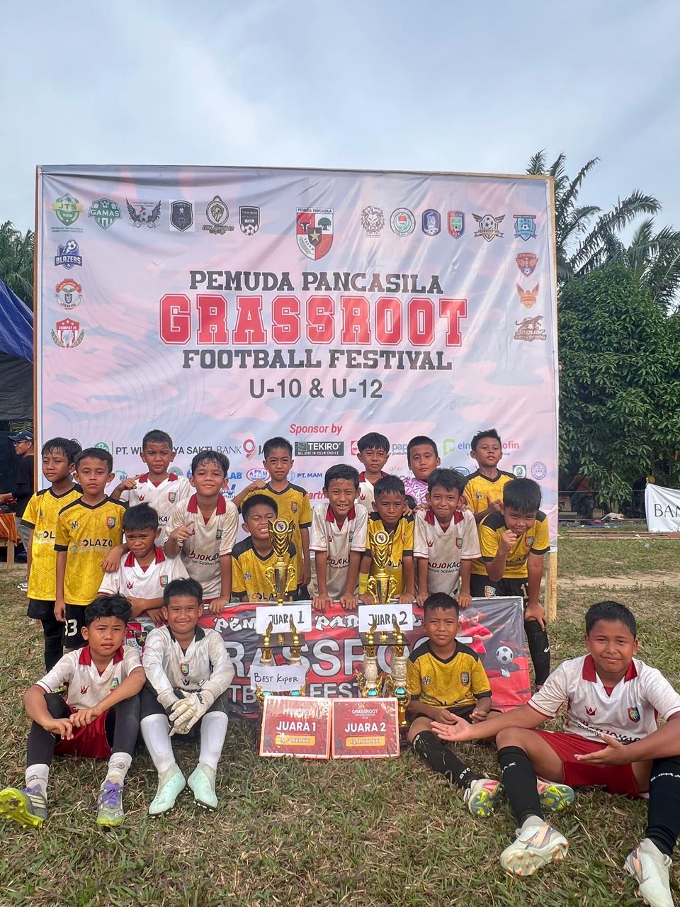 Jambi, otodanews.com – Sekolah Sepak Bola (SSB) Golazo U-10 Jambi menyapu bersih semua pertandingan tim sepak bola dari berbagai SSB yang mengikuti turnamen Pemuda Pancasila (PP) Grassroot Football Festival , dengan menciptakan terjadinya All Golazo Final. Sebanyak 16 tim SSB hanya yang mengikuti festival anak usia dini. Golazo Pink taklukkan Golazo Kuning dengan skor akhir 2-0 di partai final.