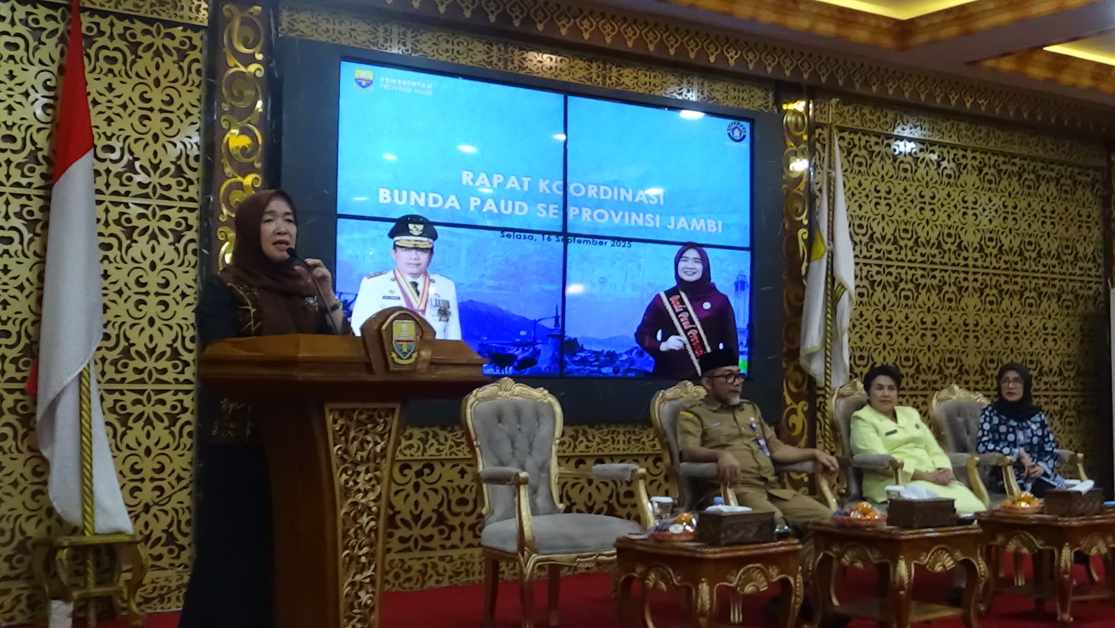 Jambi, otodanews.com – Bunda PAUD Provinsi Jambi, Hj. Hesnidar Haris, SE., (Hesti Haris) menegaskan komitmen Pemerintah Provinsi Jambi dalam meningkatkan mutu layanan Pendidikan Anak Usia Dini (PAUD) melalui program-program kolaboratif lintas sektor. Hal ini disampaikannya pada Rapat Koordinasi Bunda PAUD se-Provinsi Jambi, yang juga dihadiri oleh Sekretaris Daerah Provinsi Jambi, Dr. H. Sudirman, SH., MH., serta perwakilan dari berbagai instansi terkait, bertempat di Ruang Pola Kantor Gubernur Jambi, Selasa (16/09/2025).