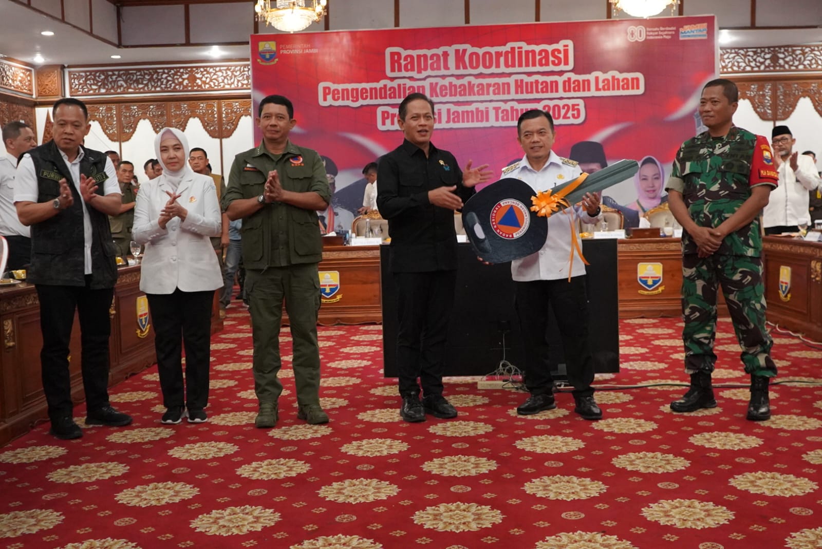 Pada kesempatan tersebut juga diserahkan secara simbolis bantuan dukungan peralatan dan logistik penanganan tanggap darurat bencana kebakaran hutan dan lahan yang diserahkan langsung oleh Menteri Lingkungan Hidup RI kepada Gubernur Jambi dan Danrem 042/GAPU, senilai Rp. 3.544.139.600 dengan rincian 2 unit motor Karhutla, 1 unit motor pemadam kebakaran 3 roda, 25 unit pompa jinjing 2 HP dan kelengkapannya, 20 unit APD Karhutla serta 10 unit alat pendukung wajah khusus personal.